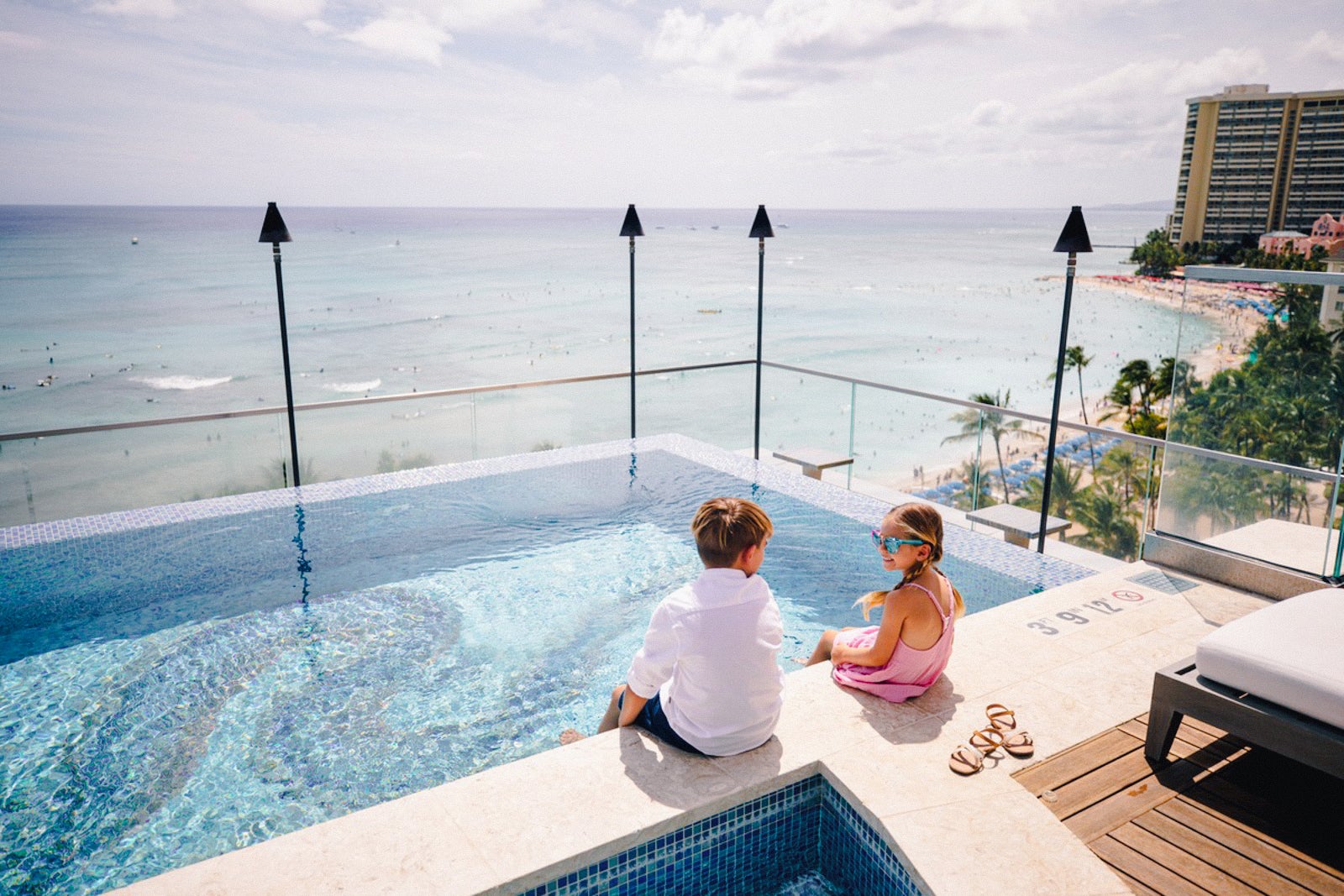 Just a stone’s throw from Waikiki Beach, this hotel features spacious rooms with private balconies that provide breathtaking views of the cityscape and ocean beyond. Families and larger groups seeking more space will appreciate the hotel’s one- and two-bedroom suites, complete with plush sofa beds, midcentury furniture and locally curated artwork.